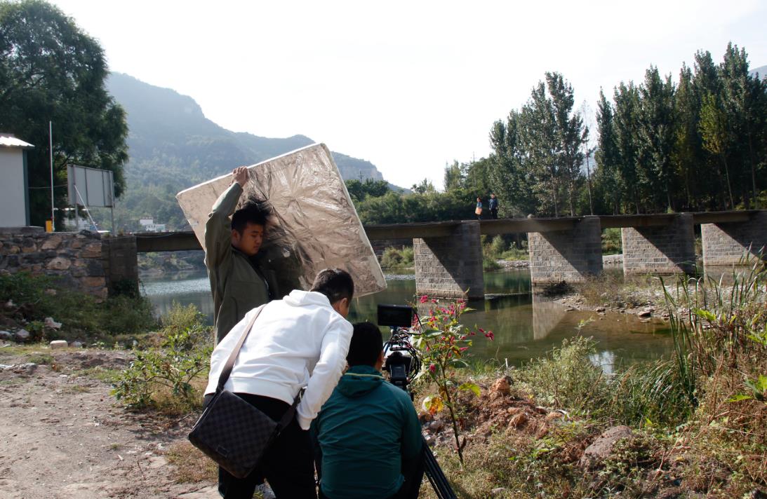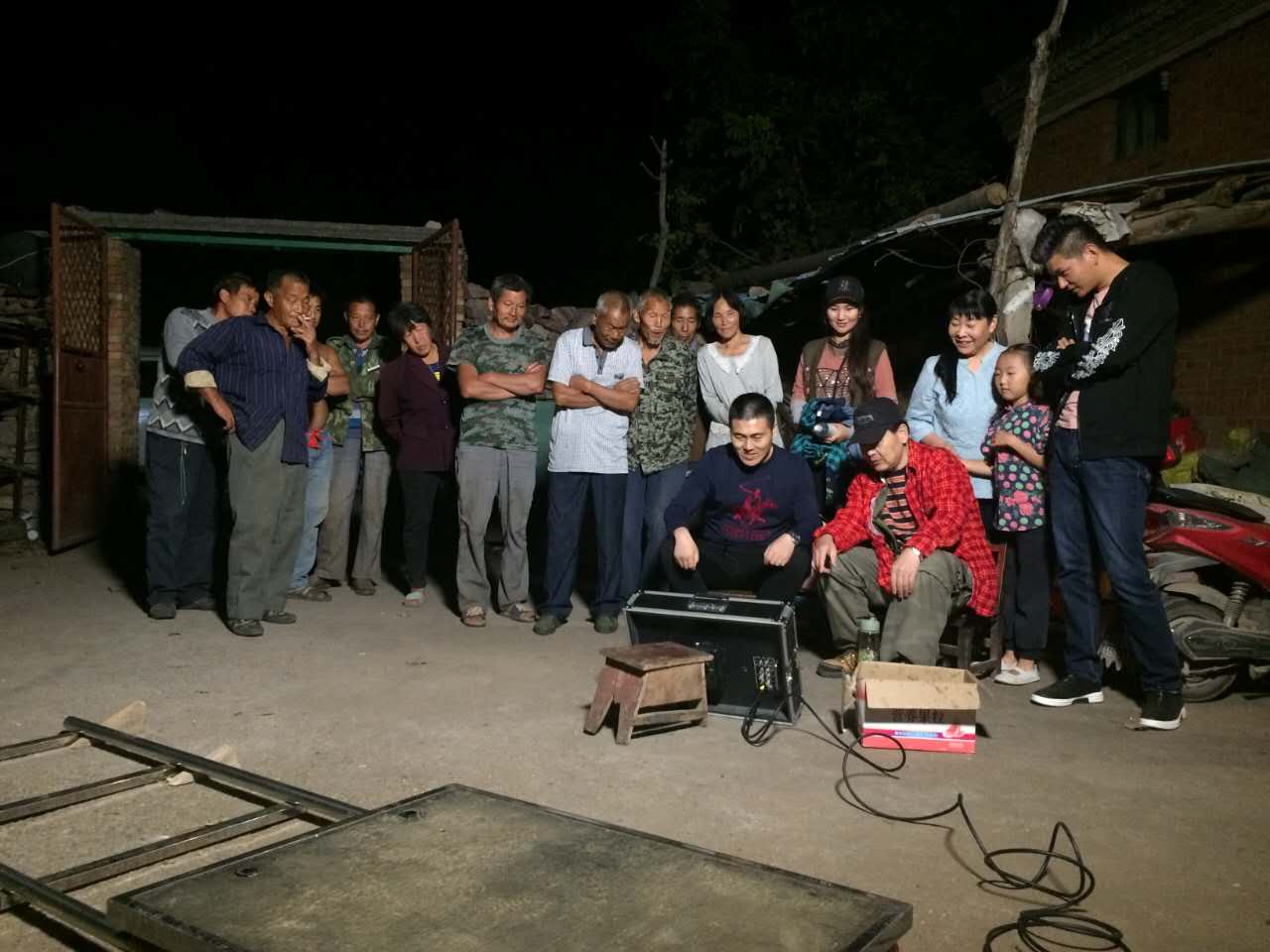 担心山间的天气多变,大家一刻也不敢放松,从山脚到山间,伴随着最后一点夕阳落下,大家又迅速开始准备晚上的一场夜戏。夜戏在山间乡民的围观中顺利完成,紧张而充实的第一天也过去了。