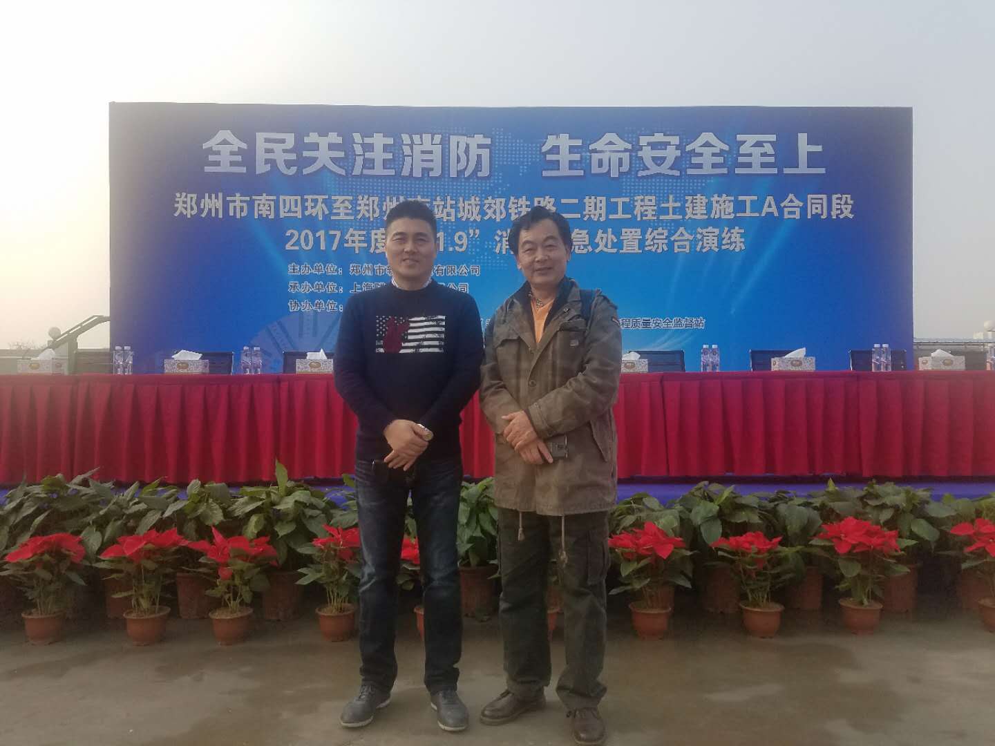 1月9日,郑州市南四环至郑州南站城郊铁路二期工程土建施工A合同段工地现场观摩指导本工地2017年度“11.9”消防应急处置综合演练圆满结束。