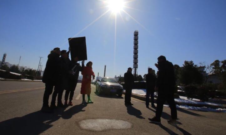 (外景拍摄,还能看到路边的积雪)